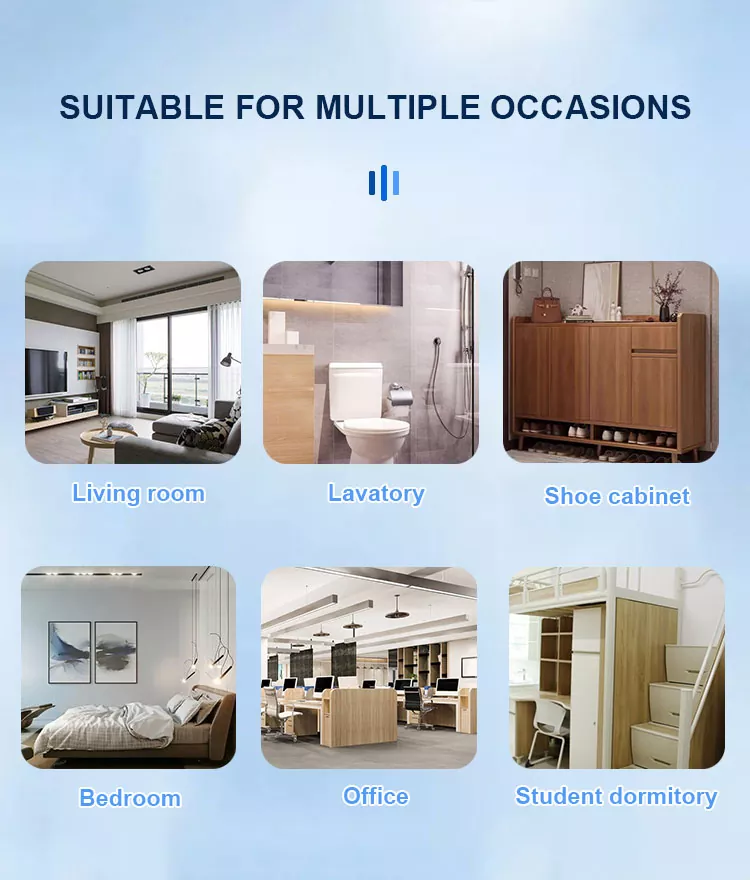 արտադրանք է, որը հատուկ նախագծված է ներքին օդի որակը բարելավելու համար: Այն կարող է բարելավել ներսի հոտը, ֆորմալդեհիդը, PM2.5-ը և այլ վնասակար նյութեր, որպեսզի ավելի մաքուր և մաքուր օդ շնչեք: Օդը թարմացնող միջոցները հարմար են հետևյալ սցենարների համար.